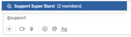 Once you've filled in this information, the next step is to add the members—just like we did earlier when we created the direct messaging groups. Now anyone in your workgroup in Slack can tag @support and tag the user group into the conversation.