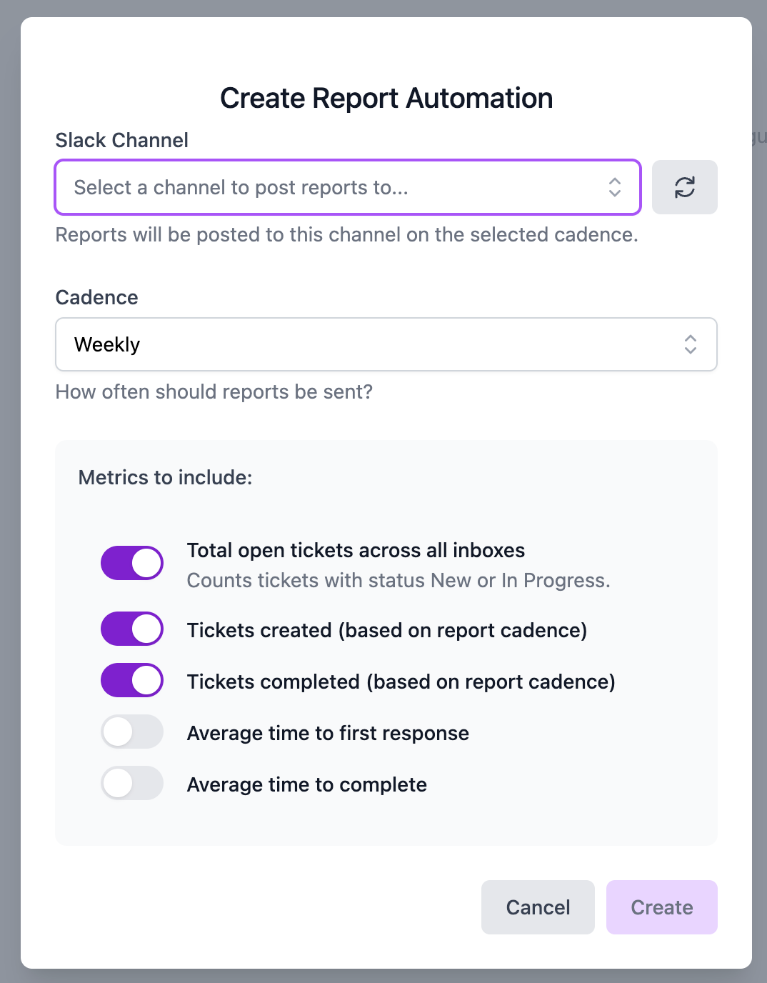 You can now schedule automated reports to post directly into a Slack channel of your choice. Pick the KPIs that matter most (volume, SLAs, response times, and more), choose a cadence, and Wrangle will keep everyone in the loop automatically.