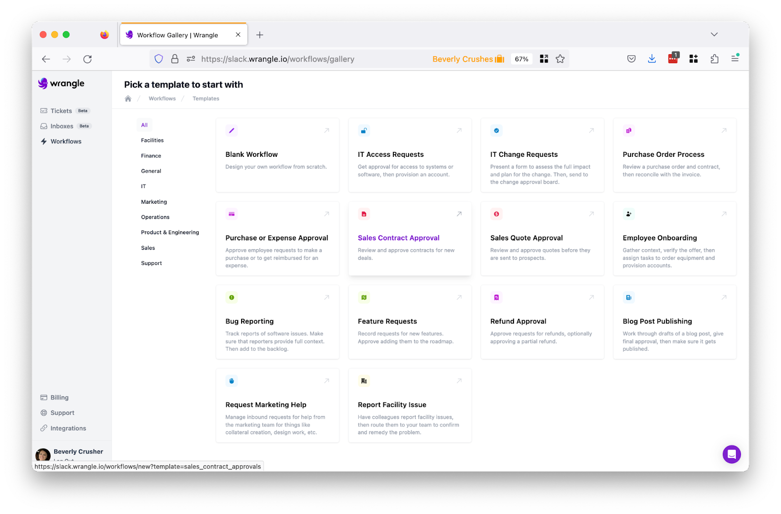 Wrangle has templates for many business processes. In fact, there is a template for IT access requests, and IT change management. We’ll choose access management.
